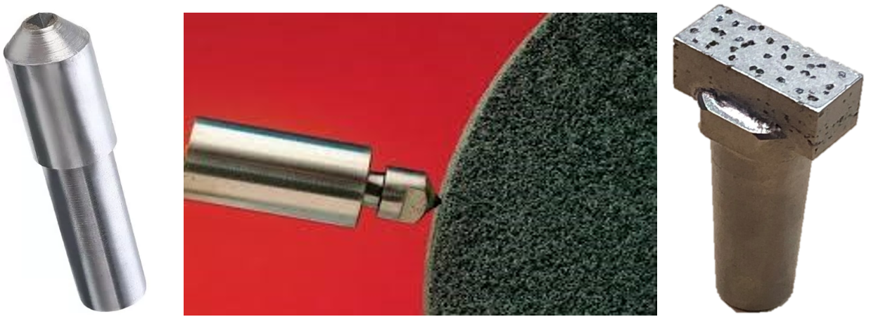 Existem diferentes tipos de dressadores, podendo ser de ponta única ou múltiplas pontas, geralmente diamantes sintéticos.