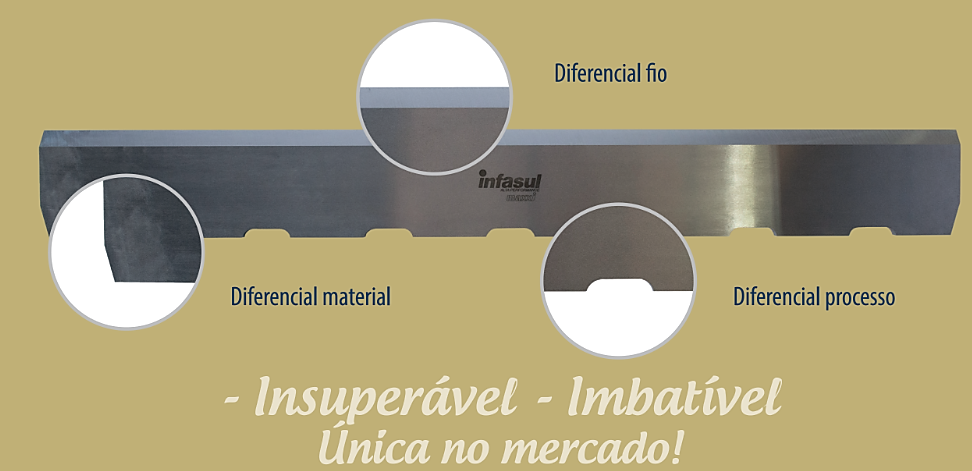 Com elevados níveis de sujidade e abrasividade em meio as toras processadas, característico da região, as facas convencionais “de mercado” apresentavam um rendimento médio de 8 horas de corte efetivo, sendo necessária após, a retirada para o processo de reafiação.